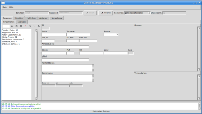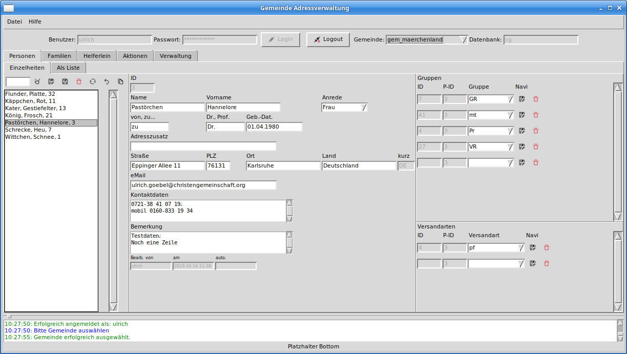 Jetzt sieht man vor allem, dass es Unter-Reiter gibt. Personen kann man z.B. mit allen Einzelheiten oder als Liste (mit einer Auswahl relevanter Felder) bearbeiten. Die Schachtelung der Reiter findet sich für Tagungen hier und für Gemeinden hier.