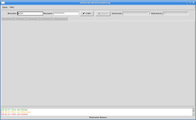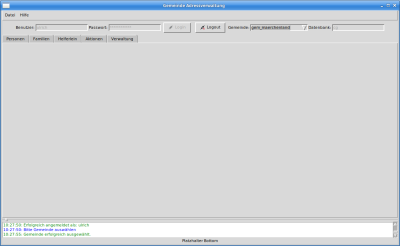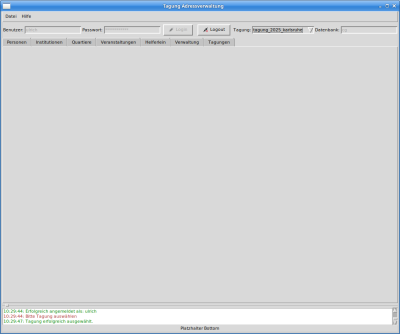 Abmelden kann man sich über den Button Logout oder einfach durch Beenden des Programms. Letzteres geht über die Menüleiste unter Datei oder über die Tastatur mit Ctrl-Q bzw. Strg-Q